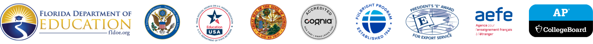 Le programme Academica Dual Diploma™ est accrédité par plusieurs organismes éducatifs et institutionnels reconnus. Ces accréditations garantissent la qualité académique du programme, le respect des standards du système éducatif américain et la reconnaissance internationale du High School Diploma. Il est également distingué par le prestigieux President’s E Award, décerné par le Président des États-Unis, qui récompense le caractère innovant du programme.